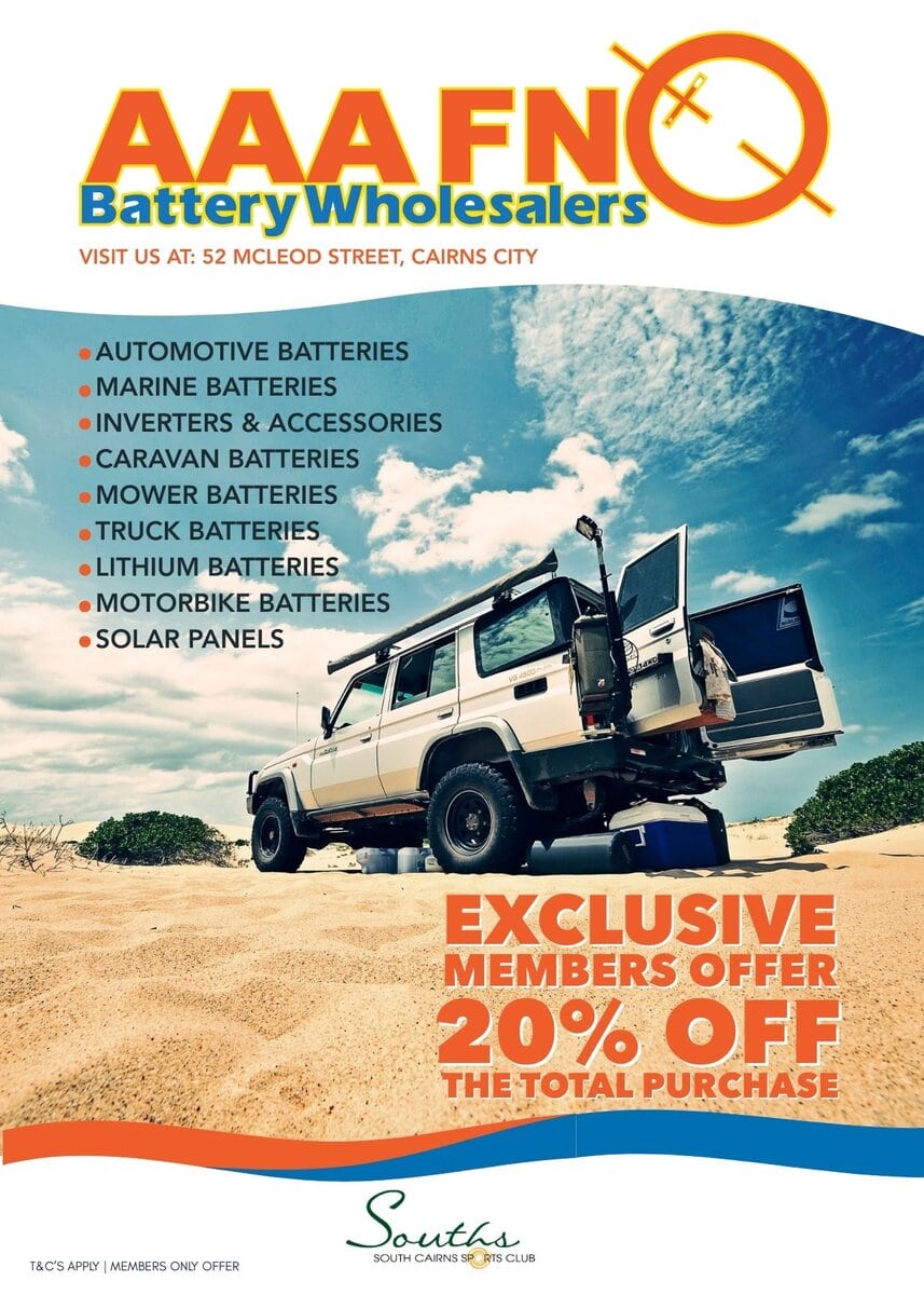 South Cairns Sports Club members are now offered exclusive discounts with 17 Retail locations (locations printed on the back of each card) around Cairns.